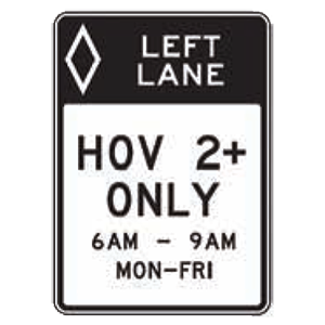 The left lane is reserved for vehicles with a specific number of occupants.